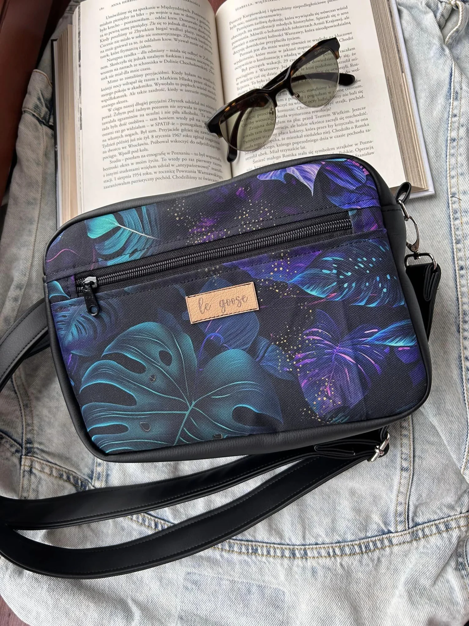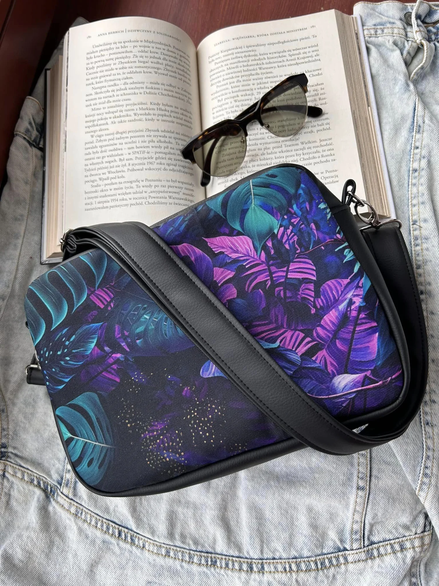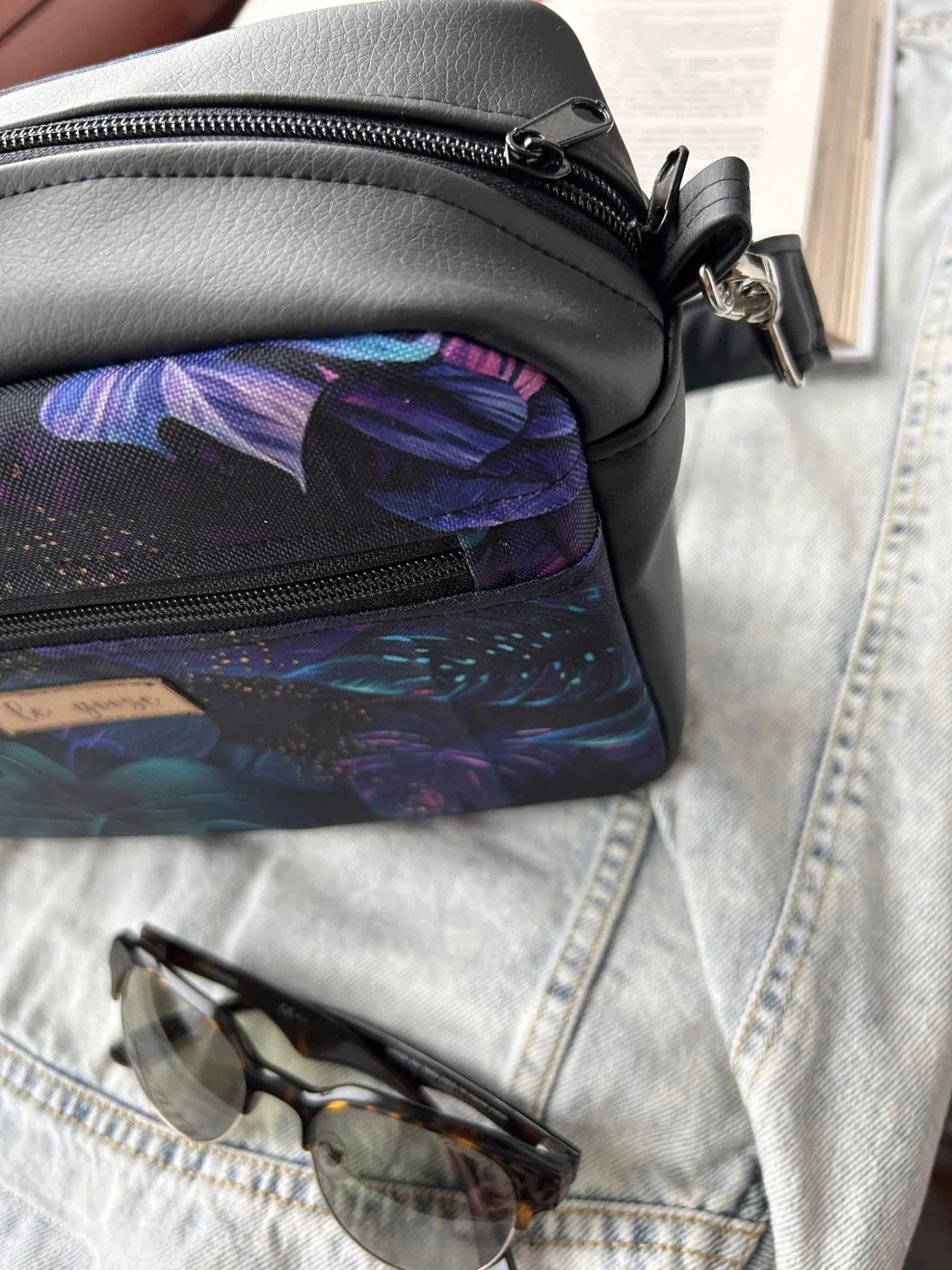 Torebka box uszyta z poliestru wodoodpornego (wzór) i ekoskóry.