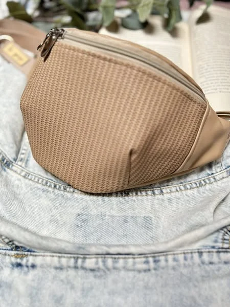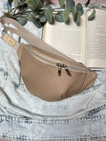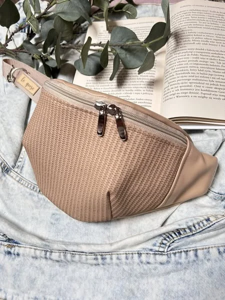 Uszyta z ekoskóry gładkiej, przednia ściana z ekoskóry tłoczonej.