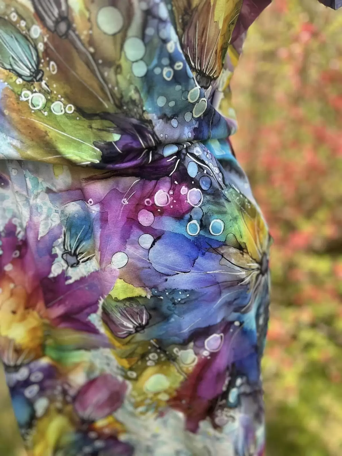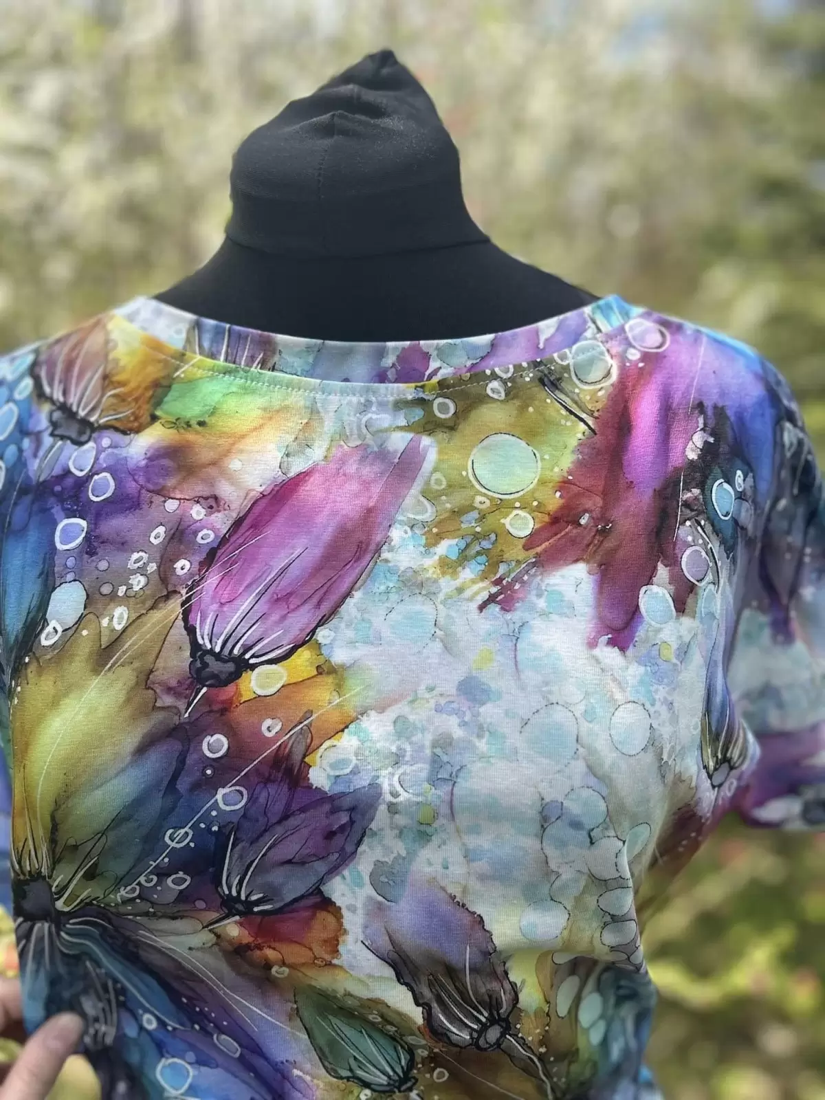 Luźna góra, dekolt odkrywający ramię.