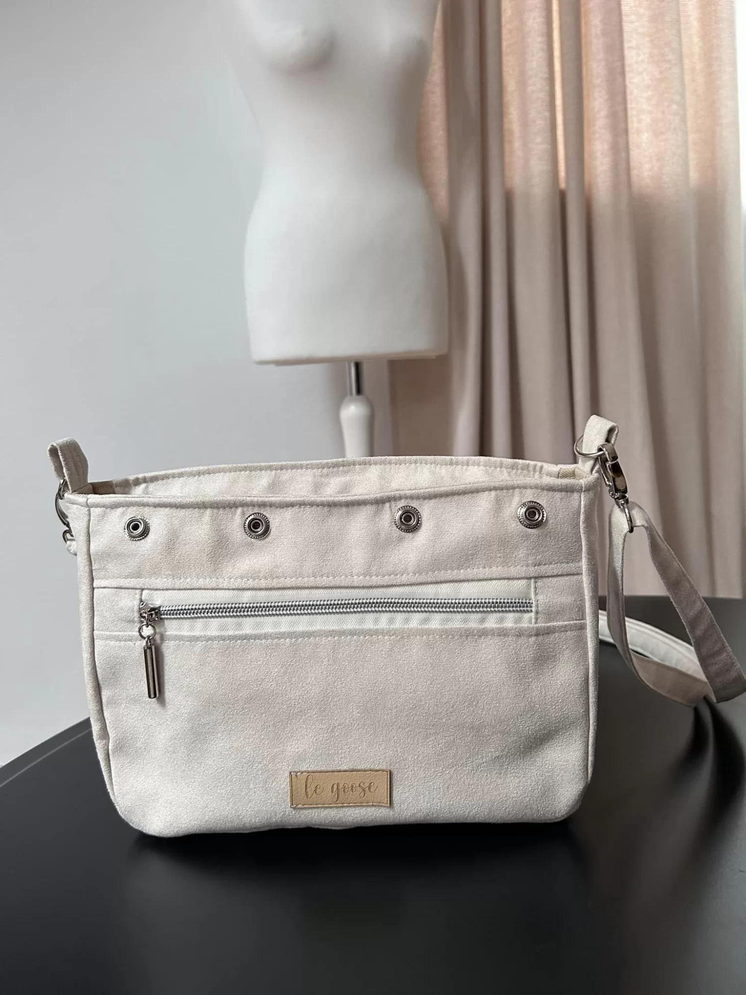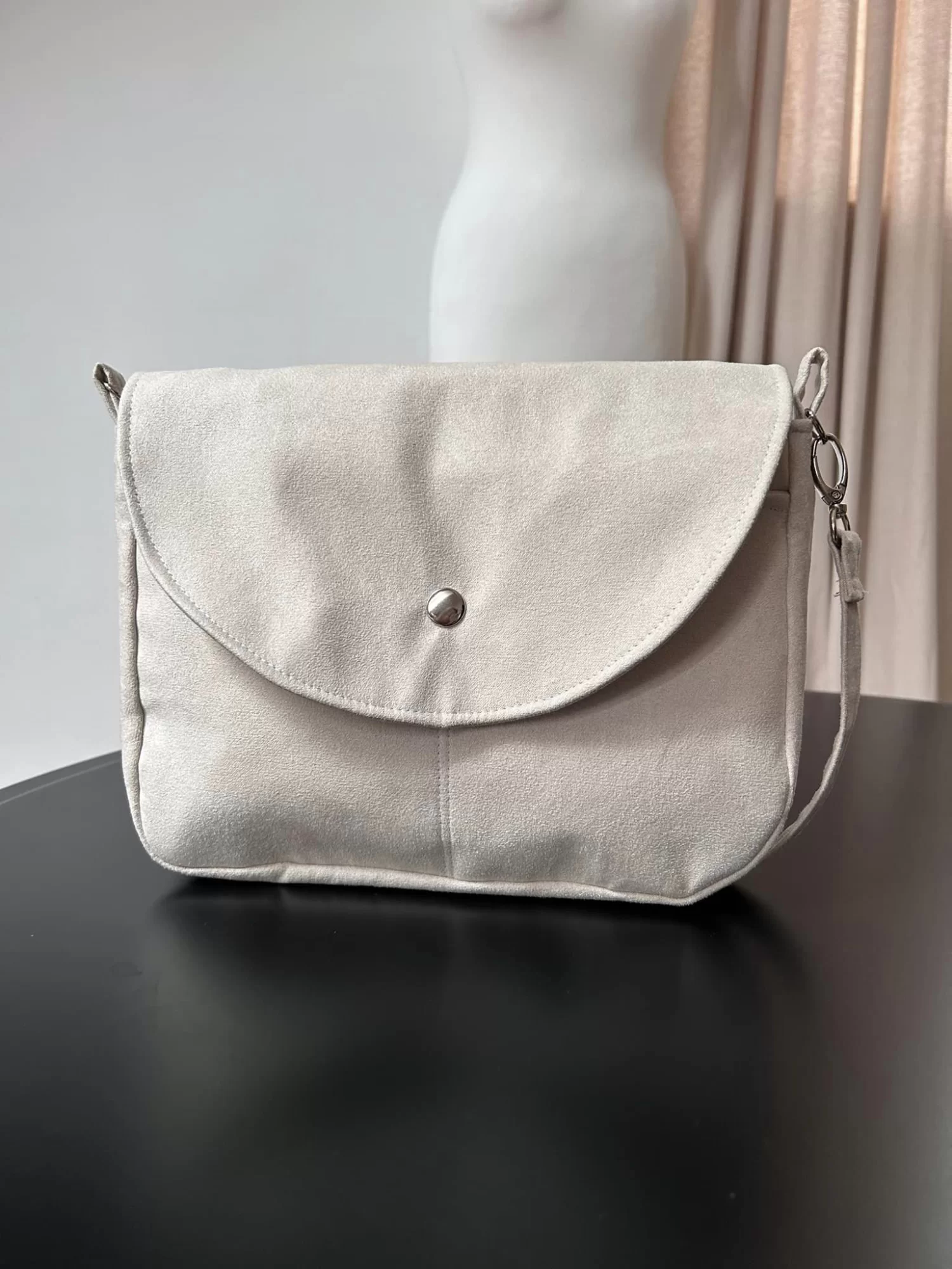 Torebka uszyta jest z nubuku.