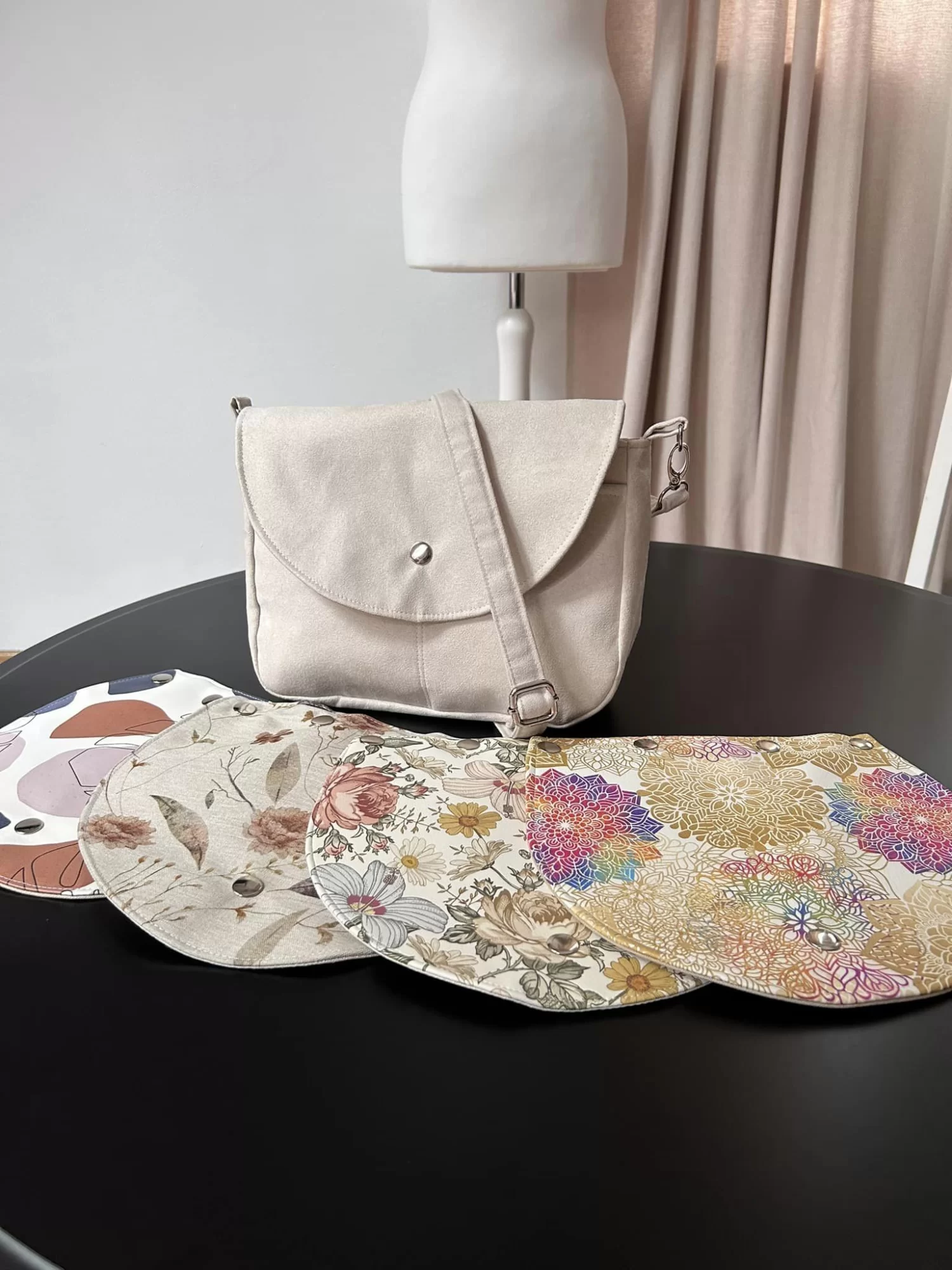 Modułowa torba z wymiennymi klapkami.