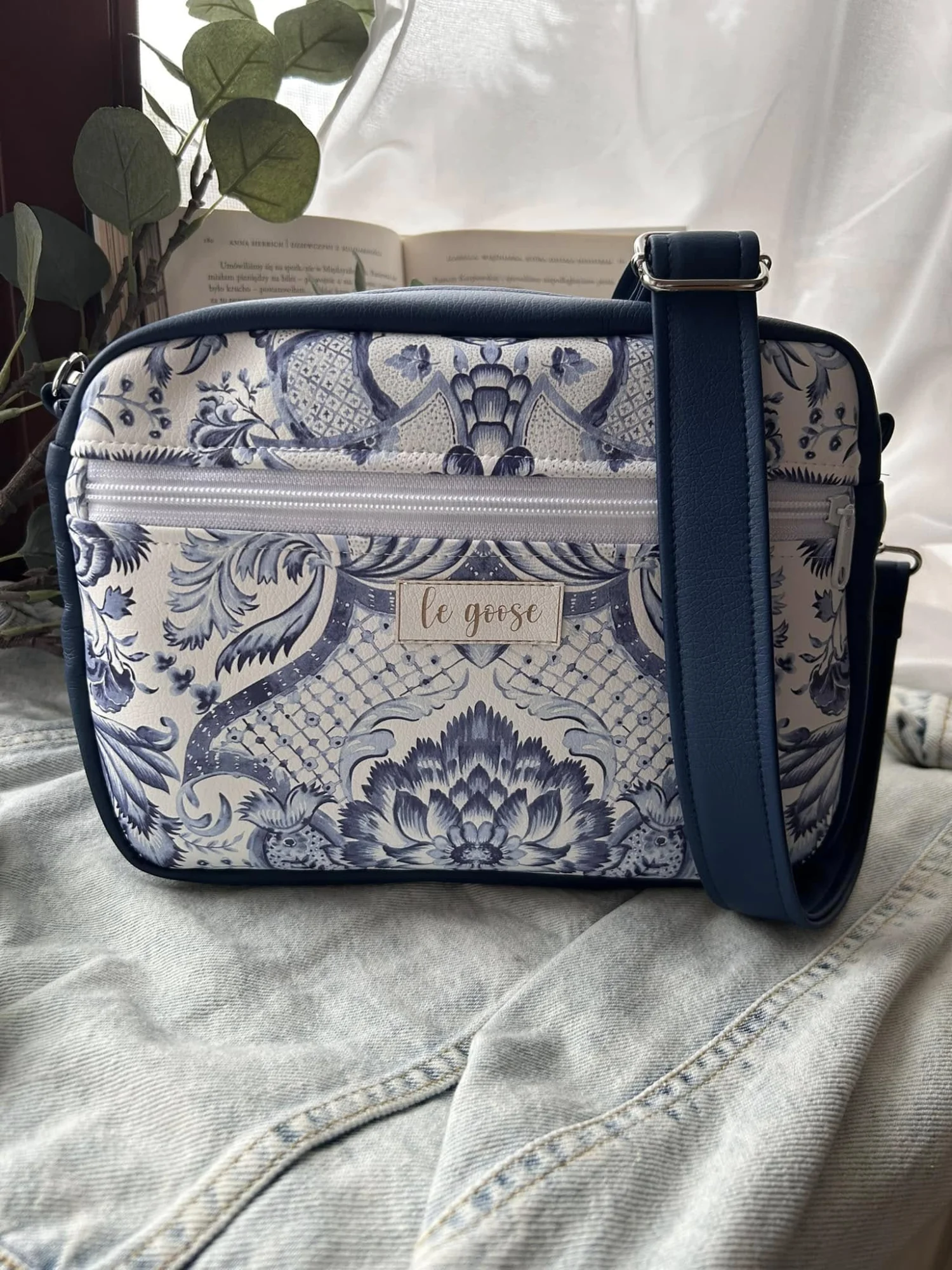 Na jednej zewnętrznej ścianie kieszeń zamykana na zamek, w środku dwie wsuwane kieszonki.