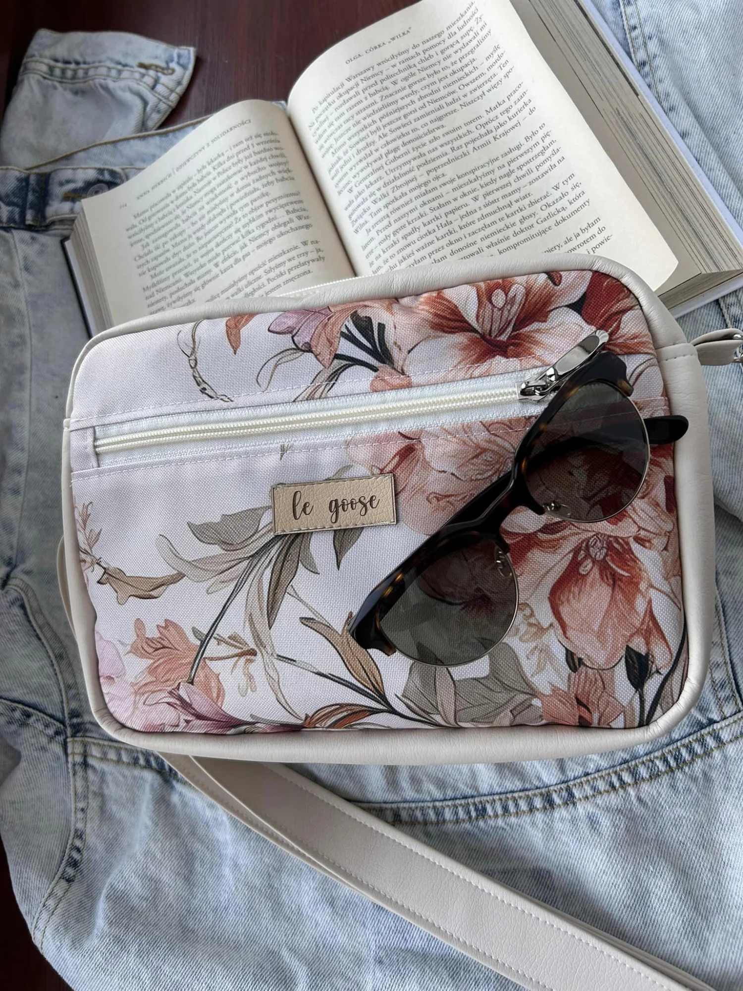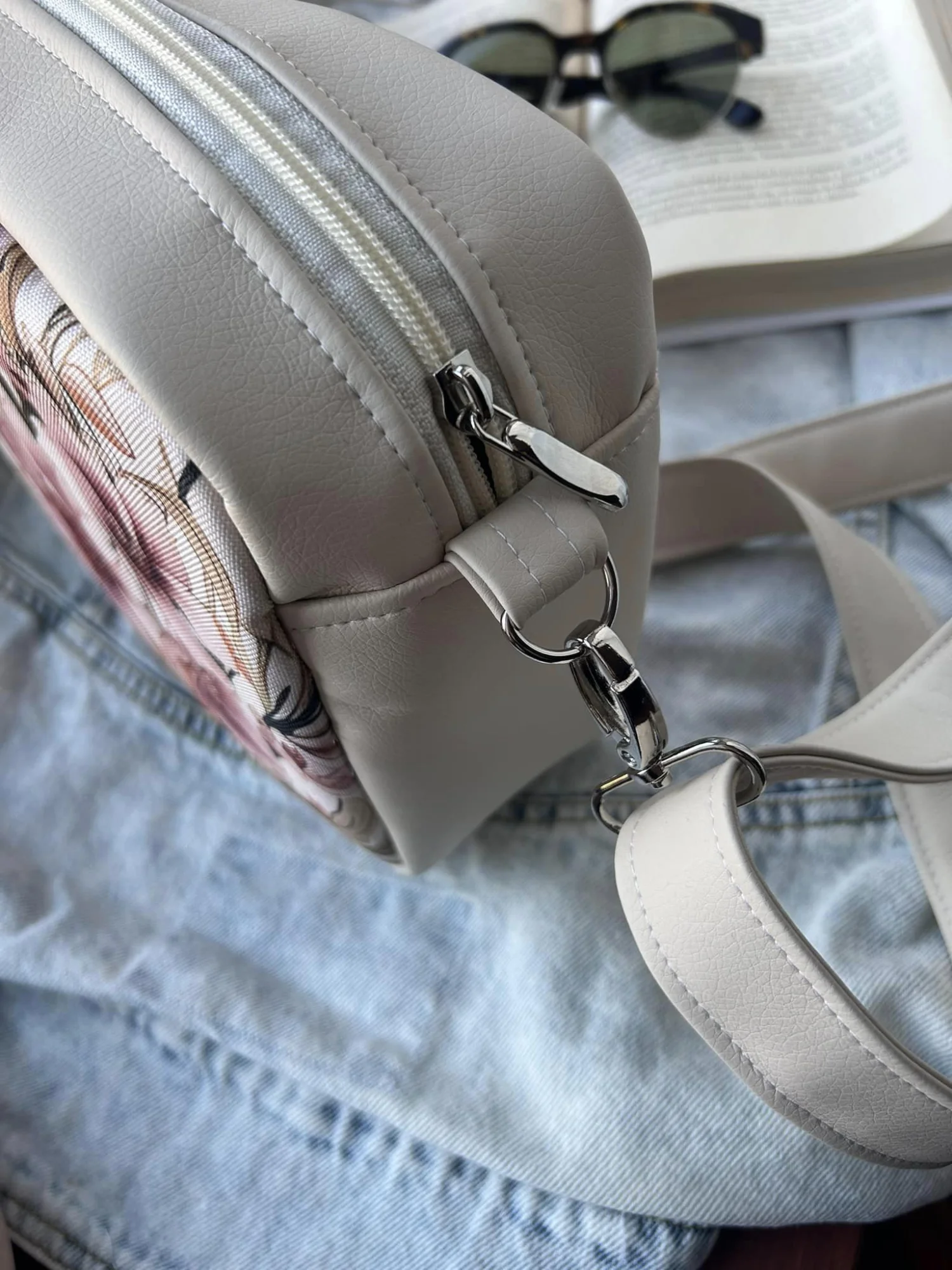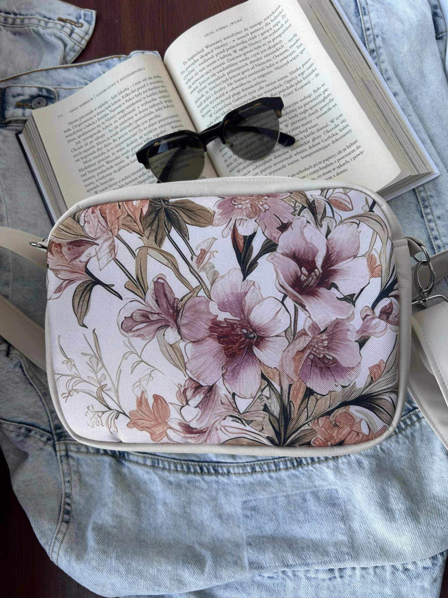 Torebka box uszyta z poliestru wodoodpornego (wzór) i ekoskóry.