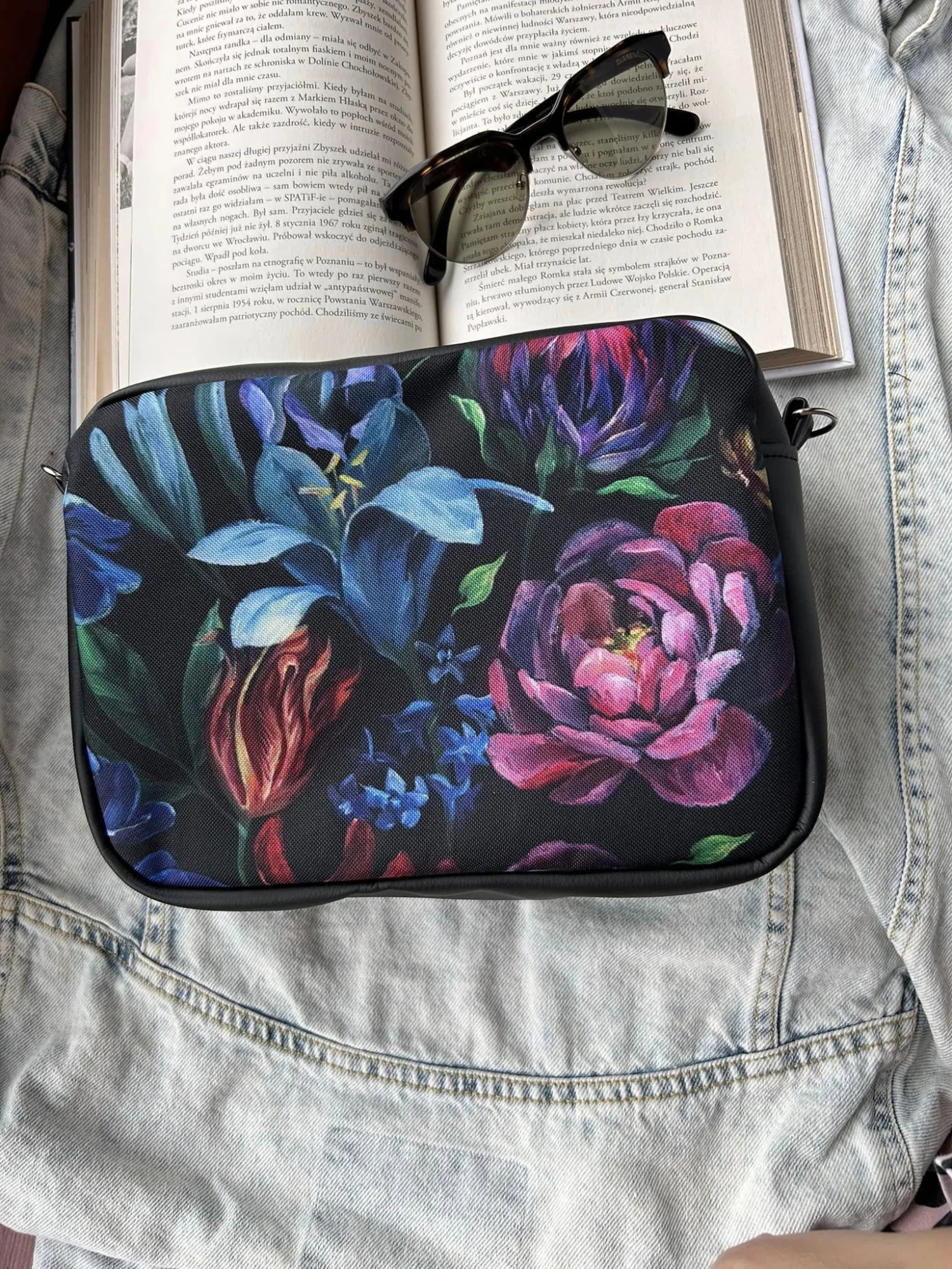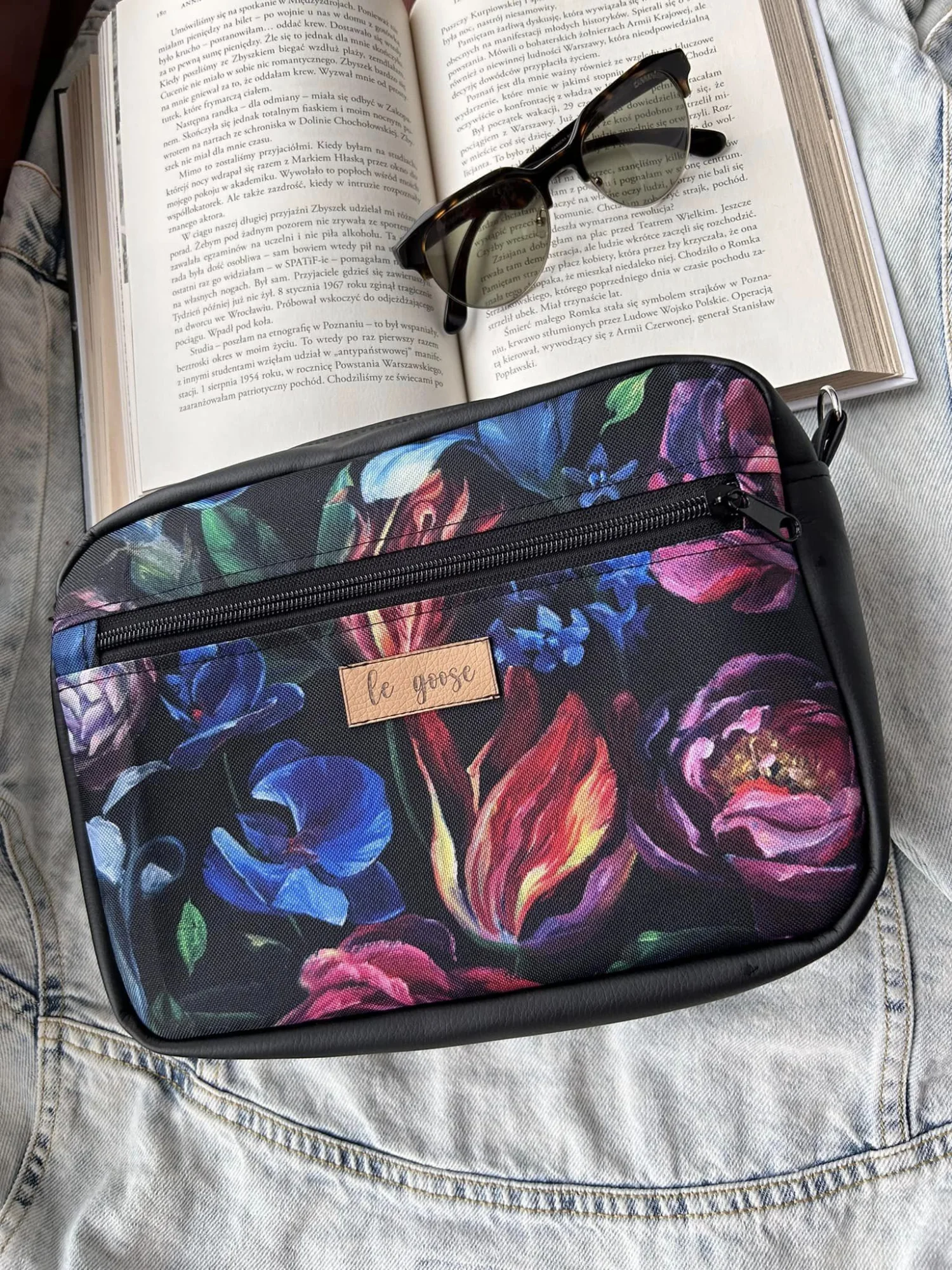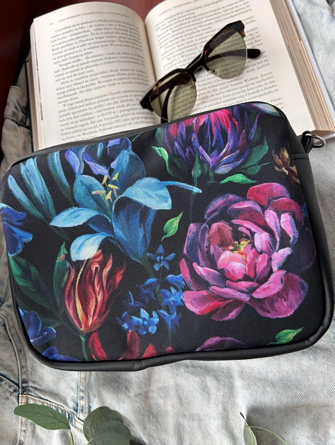 Torebka box uszyta z poliestru wodoodpornego (wzór) i ekoskóry.