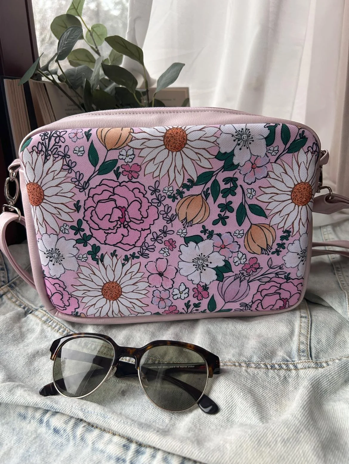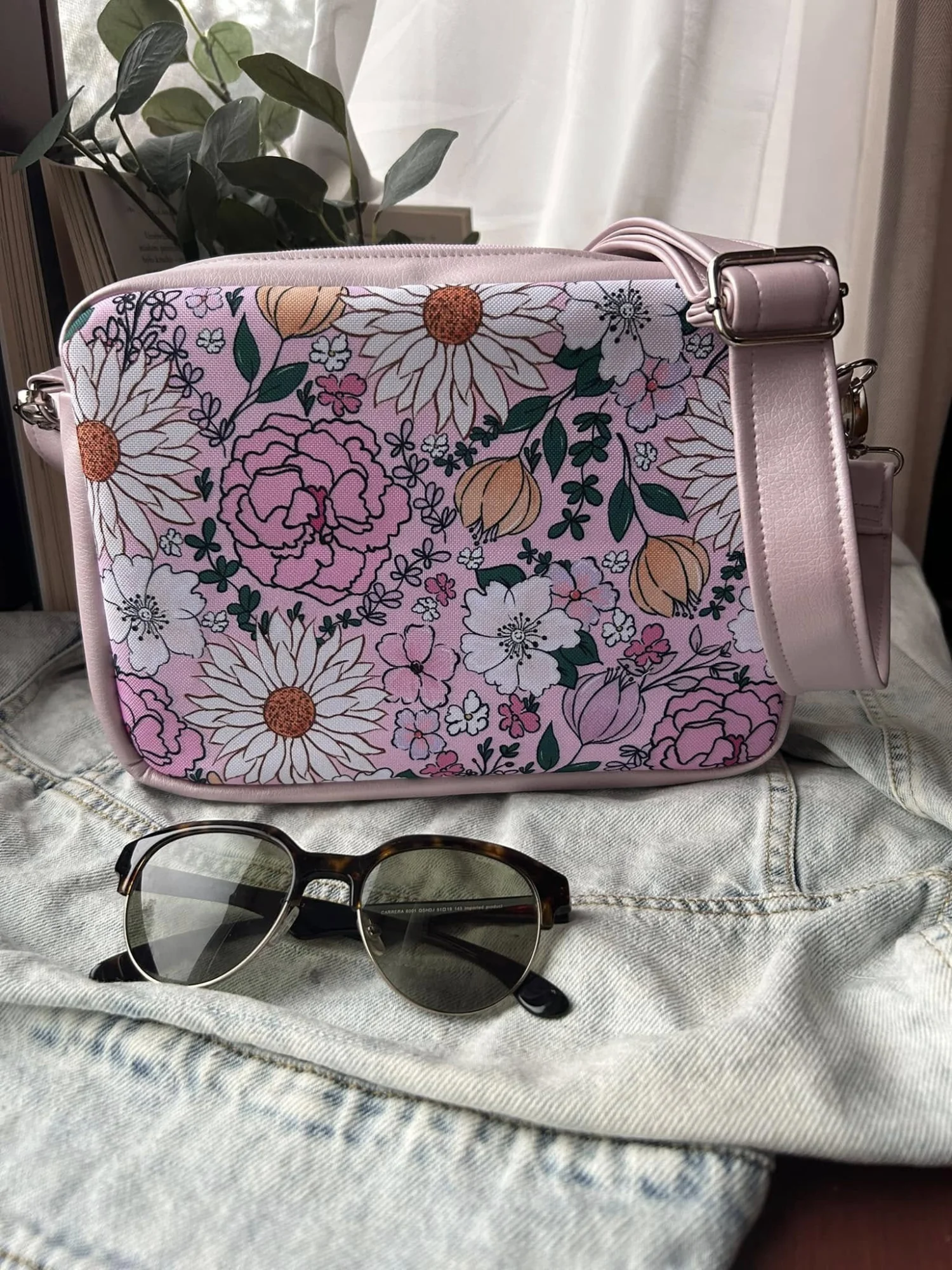 Torebka box uszyta z poliestru wodoodpornego (wzór) i ekoskóry.