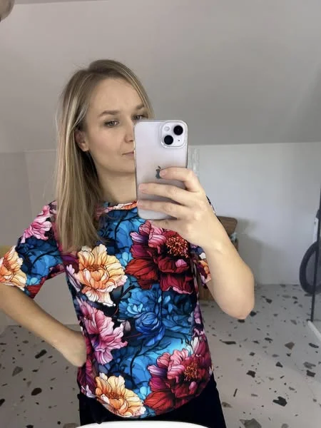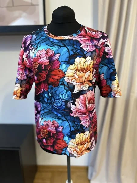 Szyty z dzianiny Jersey skład 95%bawełna 5% elastan.