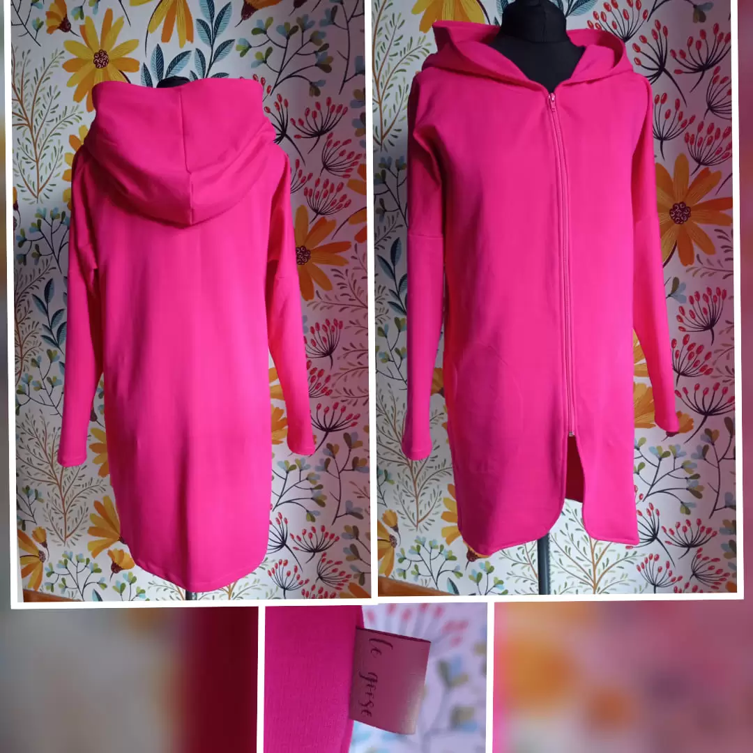 Długa bluza na zamek wykończona obłożeniem.