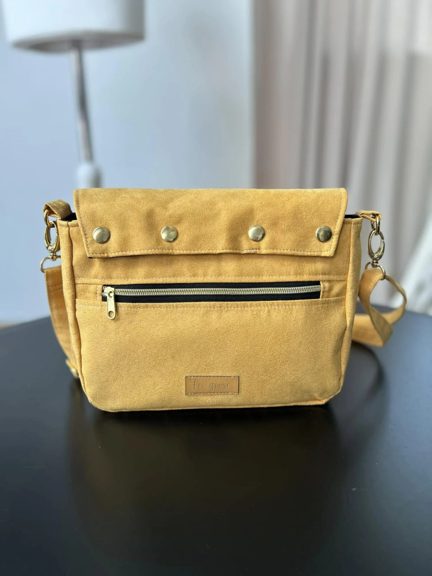 Torebka uszyta jest z nubuku.