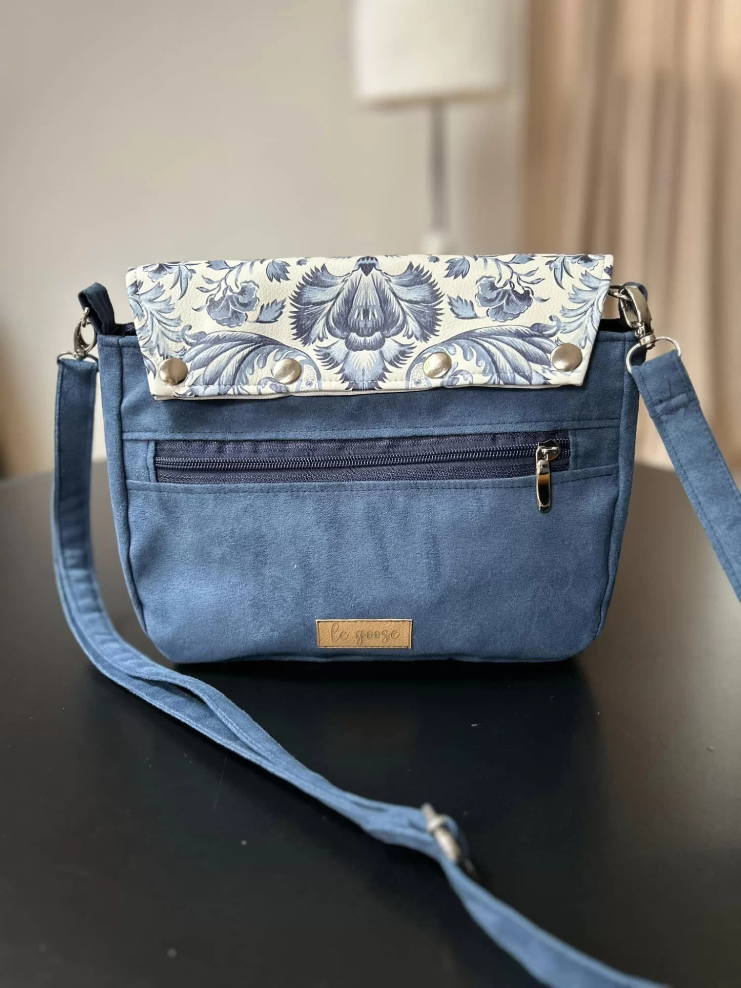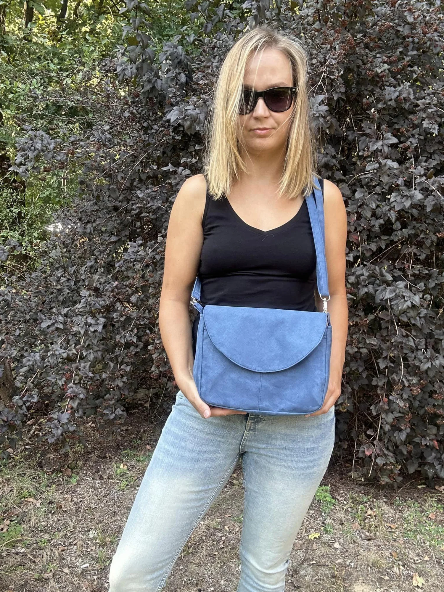 Torebka uszyta jest z nubuku.