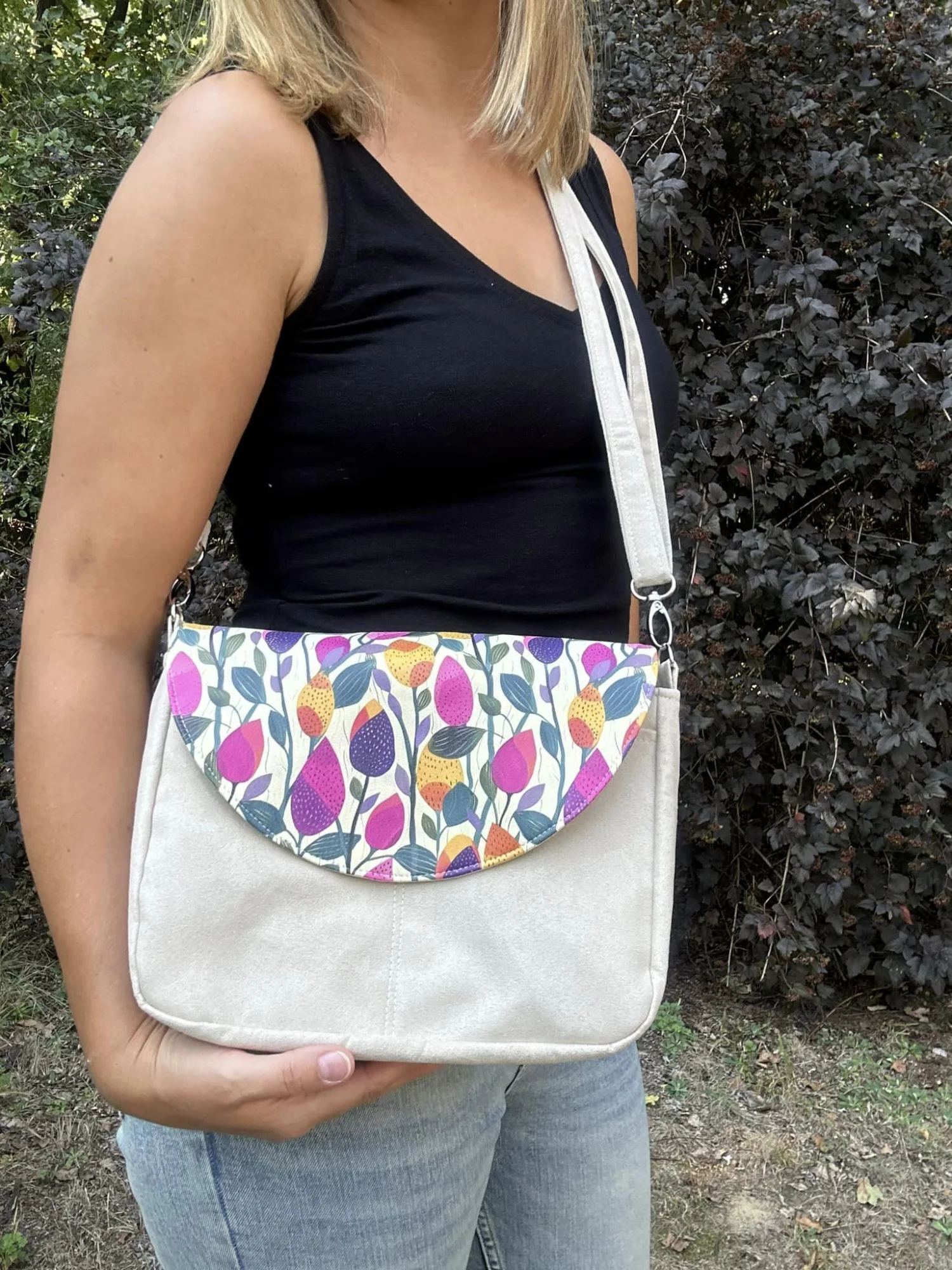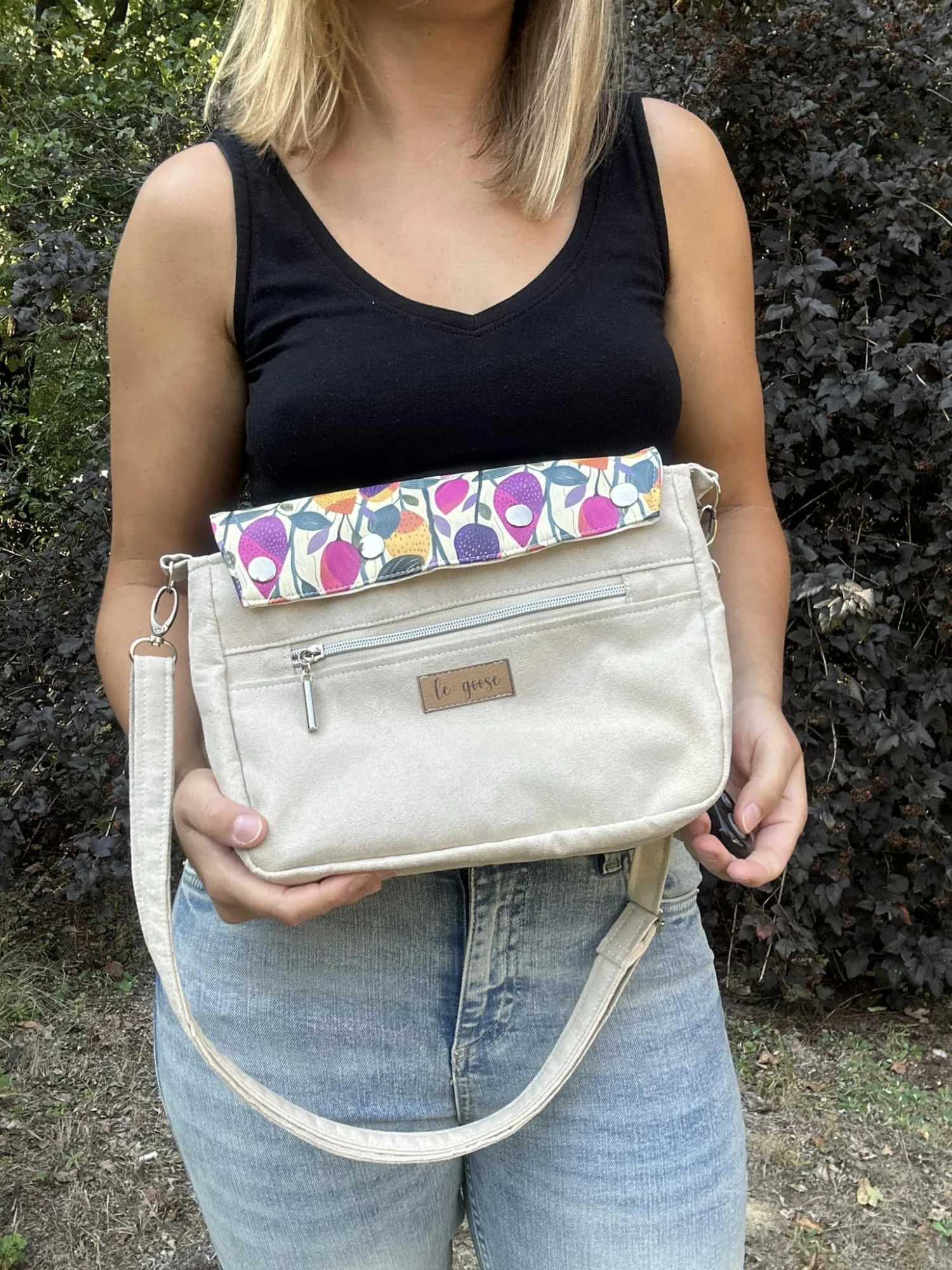 Uszyta z ekoskóry, podszewka z poliestru wodoodpornego.